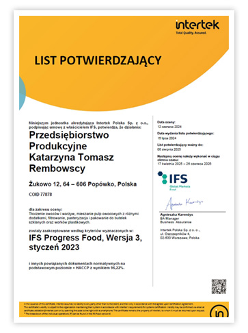Ponieważ nasze produkty skierowane są do grona koneserów, ceniących zdrowe odżywianie, procesy technologiczne, które stosujemy wykluczają użycie konserwantów oraz ulepszaczy spożywczych.